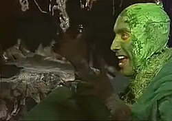 A different Russian Gollum was played by Viktor Smirnov in Leningrad Television's two-part 1991 TV play Khraniteli, rediscovered in 2021.[34] Variety reported that "he's speaking Russian, sports orange eye-shadow and has what appears to be bright green cabbage leaves pasted to his head."[32]