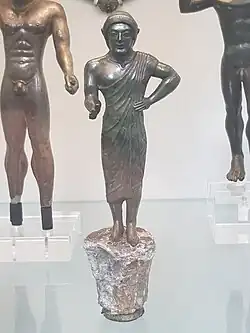 Etruscan Bronze votive figure from Pizzidimonte near Gonfienti, now in the British Museum (500-480 BC)