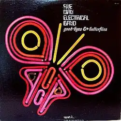 Good-byes and Butterflies is a studio album by Canadian rock band the Five Man Electrical Band.[2] The album includes the band's biggest hit, "Signs," which peaked at #3 on the Billboard Hot 100.[3][4] The album was released in 1970, and then re-released in 1971 with different cover art. The album reached #52 in the Canadian RPM Magazine charts.[5]