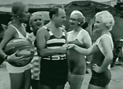 The American scholar Michael Slowik described Goodbye Love as one of the key films in its use of non-diegetic music (music heard by the audience, but not by the characters in the film).[1] Most of the early talkies tended to feature diegetic music (music heard by both the audience and the characters). Slowik noted that in the early scenes in the Goodbye Love set in New York where both the main characters, Hamilton and Groggs, are sent to "alimony jail", the music is downbeat and sad.[1] Later on, when Groggs affects an English accent and poses as the millionaire big game hunter "Sir Oswald" at the resort in Atlantic City and is surrounded by adoring young women, the music become light and bubbly.[2] The type of music played in the background during the Atlantic City segment reflects that for the first time in his entire life Groggs had become a person of importance and has even become sexy and desirable.[2] Likewise, when the gold digger Malone steals all of Grogg's money, the music again becomes sorrowful to reflect Groggs's miserable mood as he finds that she did not love him as she claimed and he is once again reduced back down to being a humble valet.[2] In the scene where Hamilton is planning to be photographed having sex with someone who is not his fiancée to break his engagement, he is stunned to see the woman who has volunteered for this task is his secretary Dorthey Blaine who appears in her lingerie and declares her love for him; the music in this scene is lush and romantic as Blaine finally is able to express her feelings for Hamilton.[2]