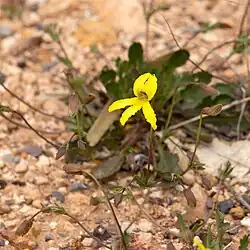 Spur velleia usually grows in mallee or grassland and rocky sites, in all states of Australia, except Tasmania and the Northern Territory.[2][3][4]