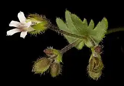 Goodenia cycnopotamica is an annual herb. The flower stalks are up to 25 cm long. Leaves oblong to oblanceolate, dentate to lyrate; lamina 2-6 cm long, 3-10 mm wide. The bracteoles are up to 15 mm long, and free. The sepals are free or nearly free, about 4 mm long, and are oblong to elliptic,[2] and attached below the ovary.[3] The pink, lilac to white corolla is 5 to 6 mm long, and hairy to almost smooth on the outside, while the inside is sometimes glabrous and sometimes not. There are no projections. The ovary has about four ovules. The capsule is globular. The seeds are wrinkled and 3 to 4 mm in diameter,[2] with a comma-shaped body and broad wings.[4] It flowers mainly from August to October.[2]