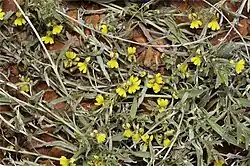 This goodenia grows in hummock grassland on sandplains and sand dunes in central Western Australia, the south-west of the Northern Territory and the far north-west of South Australia.[2][3][4][5]