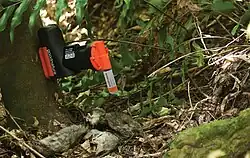 The self-resetting traps are powered by compressed gas and use a target-specific lure to attract animals. The traps work by striking the skull of the animal with a steel-cored, glass-reinforced, polymer piston (described as a captive bolt), killing it almost instantly. This piston is driven by compressed CO2 when the animal triggers the trap. Once the animal has been struck, the piston returns, dropping the animal to the ground and resetting the trap.[1] The traps have achieved the Class A standard for humaneness as set out in the MPI's National Animal Welfare Advisory Committee's guidelines.[9] This is the only possum trap ever to have met this standard.[12] The A24 also meets the United Kingdom's Spring Traps Approval Order.[13]