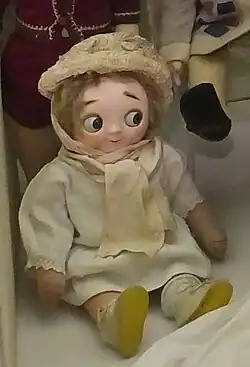 A googly-eyed doll or googly is a doll of a type popular in the early 20th century. The dolls featured large, bulging eyes, often looking off to one side.[1] Their heads were made of bisque, with bodies made from cloth, papier-mâché, bisque, or a combination of materials.[2]