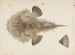 - ^ Christopher Scharpf (14 November 2022). "Order LOPHIIFORMES (part 1): Families LOPHIIDAE, ANTENNARIIDAE, TETRABRACHIIDAE, LOPHICHTHYIDAE, BRACHIONICHTHYIDAE, CHAUNACIDAE and OGCOCEPHALIDAE". The ETYFish Project Fish Name Etymology Database. Christopher Scharpf. Retrieved 3 March 2024.