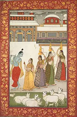 ![]() 18th century painting of Krishna playing the flute with the gopis, Cleveland Museum of Art. | |