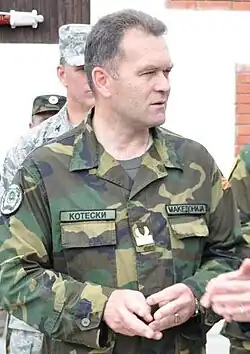 Koteski was born in Prilep, a city in then Socialist Federative Republic of Yugoslavia, on 18 August 1965.[3] Serving in the Yugoslav People's Army, he finished military school in Sarajevo and later attended a military academy in Belgrade. Following the formation of the Republic of Macedonia in 1991, Koteski served in the Army of the Republic of Macedonia and graduated from the NATO Defense College in Rome. He served as the military attache in Germany and as the commander of the Joint Operations Command (March―August 2015). In military circles, Koteski is considered a pro-NATO and pro-reform general.[1]