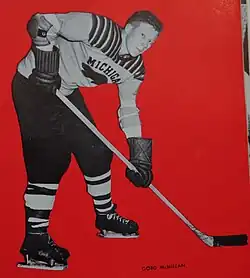 In the fall of 1945, McMillan enrolled at the University of Michigan to play hockey for Wolverines' coach Vic Heyliger. McMillan played four years of hockey at Michigan, from 1946-1949, and was the team's leading scorer all four years.[7] As a freshman in January 1946, McMillan and teammate Wally Grant both scored hat tricks in a game against McMaster University from Hamilton, Ontario.[8]