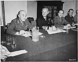 ![]() Taking a part in the Combined Chiefs of Staff discussions at the Potsdam Conference in Germany, 1945. From left to right: Lieutenant General Sir Gordon Macready, Admiral of the Fleet Sir Andrew Cunningham, and Field Marshal Sir Alan Brooke. | |