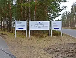 In February 1977 the Lower Saxony cabinet designated finally the Gorleben salt dome as a single location for the repository and waste disposal center. The choice of Gorleben was the work of a project group which investigated 140 salt domes within a few months. Of these 140 salt domes only four were proposed: Lichtenhorst, Wahn, Maria Glück (Höfer) and Gorleben. Of these, Gorleben was chosen. The selection criteria were among others, land use, population density, radiation and repository geology. Geoscientific arguments played only a small role. For example, the salt dome Höfer (Maria Glück) is too small for a repository but reached the last round of selection. The ultimate decision for Gorleben according to the former Lower Saxony Prime Minister Ernst Albrecht was mainly for structural reasons for the economic development of the zone.[2] 1.5 billion Euros' worth of research has been conducted in the period 1979–2000 at Gorleben.[3]
