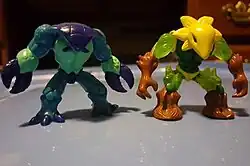 Two Gormiti toys: "Crabs the Avenger" and "Mimeticus"