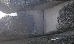 Russian popular articles have reported that scientists have proposed the rock formation to be the result of geological processes associated with the intense weathering of the rock composing Mount Shoriya.[6][4] Both tectonic forces acting on deeply buried bedrock and pressure release that occurs within nearsurface bedrock as it is uplifted and eroded commonly form rectangular, block-like, rock formations that consist of jointed rock.[7] Tectonic forces acting on deeply buried massive bedrock, such as granite, and pressure release as this bedrock is uncovered by erosion, can create sets of joints which are known as orthogonal joint sets, that intersect at nearly 90 degrees. Orthogonal joint sets quite often result in the formation of rock formations that are comparable in size and shape to the blocks shown in pictures of the alleged megaliths.[8][9]