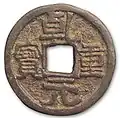 In China, the Geonwon Jungbo is viewed as a Goryeo coin or a Balhae coin.[23] The "Goryeo coin" viewpoint is represented by the Tōa senshi, published in 1938.[23] Wang Zuyuan, a proponent of the more recent "Balhae coin" viewpoint, says that Balhae always had close relations with and was strongly supported politically, economically, culturally, and militarily by the Tang dynasty; therefore, he concludes that Balhae, also known as "Haidong Shengguo" (海東盛國), minted the Geonwon Jungbo to show its loyalty to the Tang dynasty during the reign of Emperor Suzong (r. 756–762).[23] However, Balhae coins have not been excavated.[24][25] Alexander Alexeyvich Kim says, "One of the arguments the Chinese frequently use when they describe [Balhae] as 'provincial power of the Tang Empire' is the absence of [Balhae] coins."[24] Russian archaeologists argue that Balhae may have used foreign currency, as many independent and developed states did.[24]