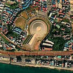 The Goshikizuka Kofun (五色塚古墳) is a kofun burial mound located in the Goshikiyama neighborhood of Tarumi-ku, Kobe, Hyōgo Prefecture, in the Kansai region of Japan. The tumulus is the largest in Hyōgo Prefecture, and is estimated to have been built around the end of the 4th century and the beginning of the 5th century (mid-Kofun period). It is known as the first kofun to be restored to what archaeologists believe to be its original appearance. It is also known as the Sentsubo Kofun (千壺古墳) . Together with the smaller neighboring Kotsubo Kofun (小壺古墳) it was designated a National Historic Site in 1921, with the area under protection extended in 1974, 1979 and 2006.[1]