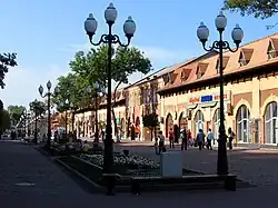 Gostinyi dvor (Russian: гостиный двор, IPA: [ɡɐˈsʲtʲinɨj ˈdvor]) is a historic Russian term for an indoor market or shopping centre.[1] It is translated from Russian either as "guest court" or "merchant yard", although both translations are inadequate. These structures originated as collections of small shops where merchants from other cities could, at designated times, come to sell their wares. Some such structures, constructed in every large Russian town during the first decades of the 19th century, are fine examples of Neoclassical architecture.