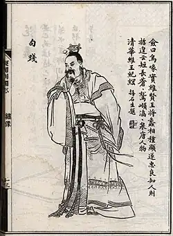 | .jpg) Goujian as depicted in an illustrated edition of Chronicles of the Eastern Zhou Kingdoms (1890) | |||||