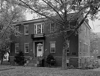 After the War of 1812, the island did not see much development. Rather, it was used for garrisoning troops starting c. 1821.[63][64] The troops garrisoned on the island were deployed to wars four times in the rest of the 19th century.[65] The New York Arsenal, a military division that dealt with artillery and was separate from the Army, moved to the island in 1832 and started constructing an armory building three years later.[66][67][68][64] Construction of structures for the Arsenal continued for several decades. To distinguish the Arsenal's and the Army's structures, the former's buildings were designed in the Greek Revival style,[68][69][70] such as the Admiral's House built in 1843.[68]