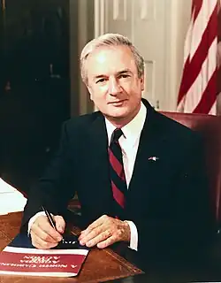 In the 1950s and 1960s, several governors and other observers advocated constitutional reforms, including changes which would enhance governors' executive authority.[30] These efforts culminated in legislative debates in 1970 and the ratification of a new constitution the following year.[31] The new constitution of 1971 stipulated that "The executive power of the State shall be invested in the Governor", making the official unambiguously the chief executive of the state. The constitution also affirmed the governor's role as the director of the state budget[18] and made them a formal ex officio member of the Council of State.[32][33] The state's budget office was directly incorporated into the office of the governor in 1979.[29]