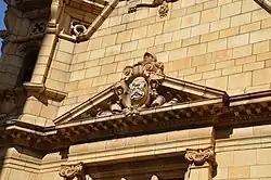 Shaped like a Greek cross, [7]William Savage's visage can be seen in one of the library's stained glass windows.[8] The building was designed by Henry Cheers, a Twickenham architect[9] With a statue of Queen Victoria in the forecourt, created by British sculptor Edward Roscoe [10] The marble statue from Sicily depicts Queen Victoria in royal robes, wearing her small diamond crown. Her statue was erected and unveiled in front of the newly opened public library on 30 September 1903 by J.C. Kemsley, then Mayor of Port Elizabeth.[11] The Statue was restored in 1992 by Anton Momberg, but vandalised again in 2015. as part of the "Rhodes must fall" campaign.[12] · .[13]
