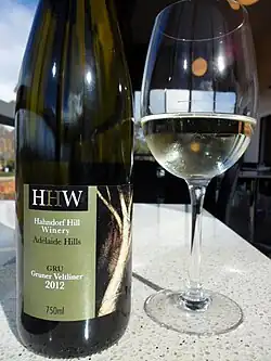 In Australia, Grüner Veltliner has seen an increase of interest and plantings which has led wine expert James Halliday to speculate that the grape may be "the next big thing" in Australian wine.[20] One of the earliest Grüner Veltliner plantings in the country was in the Adelaide Hills wine region in the state of South Australia in 2008 by Hahndorf Hill Winery. The grape planting is part of an extensive effort of Adelaide Hills grower, chaired by Henschke's viticulturist, Prue Henschke, to make Grüner Veltliner a signature variety for the region. Here the region's large diurnal temperature variation allow the grape to build sugar levels during the warm days but maintain a balance of acidity during the cool nights.[21]
