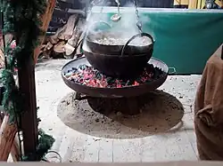 The participants in a Kohlfahrt ("cabbage walk") arrange a walk through the countryside to a village pub, usually in mid-winter. Often this walk is linked with cross-country games such as Boßeln. As fortification against the frosty weather and in preparation for the hearty meal, an ample supply of alcoholic beverages, such as korn, or, for sailors, sherry, is taken in a shopping trolley or handcart, and is handed out as part of the games or at points along the walk (e.g. at crossroads or pylons). At the village pub the merry walkers are served with Grünkohl and, depending on the region, with German fries or boiled potatoes and Kassler, Bregenwurst, Pinkel or Kohlwurst. In addition there is also a lot to drink: (beer and/or Korn) allegedly to aid the digestion. In many areas there is also music and dancing after the meal.
