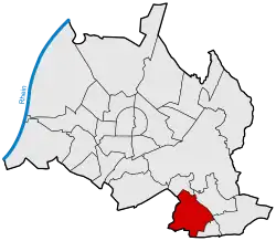 In order to prevent an incorporation into Karlsruhe, Grünwettersbach and Palmbach merged on January 1, 1972, to form the municipality of Wettersbach,[3] named after the Wettersbach river that runs through both towns. Despite that, on January 1, 1975, Wettersbach was incorporated into Karlsruhe.[4] Both districts were given their original names back.