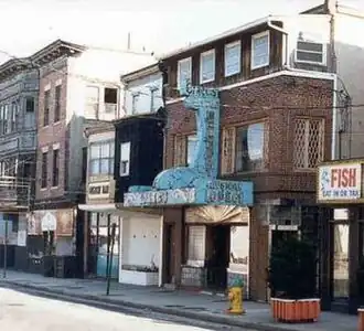 Grace's Little Belmont attracted both black and white clientele, including "celebrities and night-life connoisseurs".[16][17] The most popular shows, however, were the afternoon matinees, attended by beachgoers seeking relief from the summer heat.[2] Guests often circulated between the Little Belmont and Club Harlem across the street, and the same performers played both clubs.[2] After finishing her show at Club Harlem, comedian Moms Mabley sometimes crossed the street and did another routine at the Little Belmont.[18] Boxer Joe Louis often entertained friends here in the late 1930s.[19][20] In the 1960s, a young George Benson hung out at Grace's Little Belmont with young jazz composer Charles Earland after finishing his late-night set at the Wonder Gardens.[21]