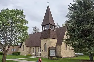 Grace Episcopal Church is an historic Episcopal church building located at 152 Ramsey Street, West in Pembina, Pembina County, North Dakota. Designed in the Late Gothic Revival style of architecture by Fargo architect George Hancock, it was built in 1886.[2] Unlike all the other churches in the Episcopal Churches of North Dakota Multiple Property Submission (MPS),[3] it was built of brick instead of local fieldstone. The brick is yellow and was made locally by the Pembina Brick Company. The church building is one of only three extant building built of this brick. In 1937 Grace Church closed due to declining attendance and the building was sold by the Episcopal Diocese of North Dakota to the local Methodist congregation. Today it is the Pembina Pioneer Memorial United Methodist Church. On September 2, 1994, the building was added to the National Register of Historic Places as Grace Episcopal Church.[4] [5] [6]