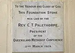 - ^ "NEW METHODIST CHURCH". The Brisbane Courier. No. 22, 728. Queensland, Australia. 1 December 1930. p. 20. Archived from the original on 30 July 2022. Retrieved 16 December 2016 – via National Library of Australia.