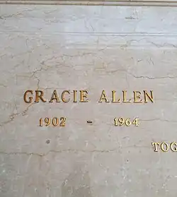 - ^ "Gracie Allen Dead". The New York Times. August 29, 1964. Retrieved February 19, 2015.