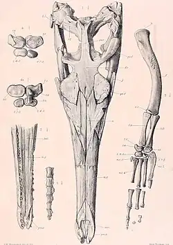 - ^ Young, Mark T., Brusatte, Stephen L., Ruta, M., Andrade, Marco B. 2009. "The evolution of Metriorhynchoidea (Mesoeucrocodylia, Thalattosuchia): an integrated approach using geometrics morphometrics, analysis of disparity and biomechanics". Zoological Journal of the Linnean Society 158: 801-859.
