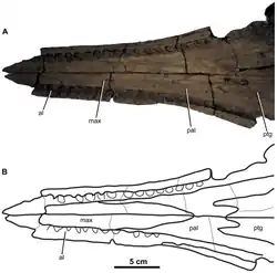 | Fossil skull of G. leedsi, NHMUK PV R5793, at the Field Museum of Natural History | |