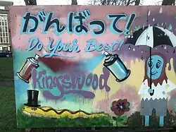 ![]() A graffiti style mural created as part of a collaborative arts project with residents of Kingswood Estate, Southwark | |