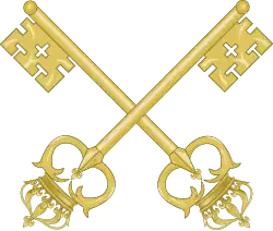 The political importance of the Grand Chamberlain stemmed from his having permanent access to the King's Chamber. His symbol of office was the keys to the royal apartments, which he always carried; in token of which, he was permitted to place two gold keys in saltire behind his coat of arms. He also was entitled to carry the banner of France. In rank, the position was between the Grand Maître de France and the Grand Écuyer. During a lit de justice, he sat at the king's feet.