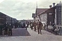 In 1863, Alexander called the Diet and issued that the Finnish language was to be on par with Swedish and Russian in the Grand Duchy, while also passing laws regarding infrastructure and currency. Alexander came to favor the Finnish working class over the Swedish elite, due to Swedish propaganda during the Crimean War urging revolt against the Russians. Alexander also passed a law regarding language ordinance in August 1863, requiring that the Finnish language must be introduced to all public businesses within twenty years. The law was expanded in 1865 to require that state offices must serve the public in Finnish if requested. Despite this, the language laws took time to be fully implemented due to the interference of the Swedish elite, who owned most of these offices and businesses. Despite this, the education laws pushed through and the first secondary schools instructed in Finnish began in the 1870s.[13] The power of the Diet was also expanded in 1869, as it allowed the Diet more power and the ability to initiate various legislation; the act also called the tsar to call upon the Diet every five years. An act passed regarding religion was also passed in 1869 which prevented the power of the state over the church. Moreover, Finland also received its own monetary system, the Finnish markka, and its own army.[14] Finland's first railway line was opened between Helsinki and Hämeenlinna on March 17, 1862.[15][16]