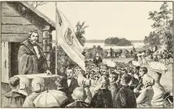 The Grand Duchy of Finland had no official flag of its own, but different types of flags were used in different occasions. An official flag was debated even in the Diet of Finland in the 1860s, but one was never officially chosen.[23] The flag of Russia was Finland's official flag until independence.[24]