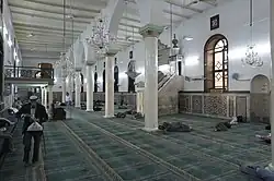 The site originally housed a mosque, which was built during the Umayyad Caliphate in the 7th century CE, on the site of an older Byzantine basilica.[2] The identification is owed to the round arches of the original mosque's portals, which are similar to the construction technique of the Umayyad Mosque in Damascus and the Umayyad mosques of Bosra and Qasr al-Hallabat.[3][2] Hence, it was called an Omari mosque.[4]