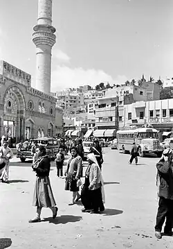 The Grand Husseini Mosque was one of the first buildings to have been constructed in Amman by the government after the establishment of the Emirate of Transjordan in 1921, in addition to the Raghadan Palace and a small prison.[5] This was described by Swiss sociologist Irene Maffi as "important," elaborating that it intended to "mark the new status of Amman and at the same time to confirm the Hashemite political and religious role in the country."[4]