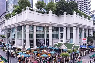 The north end of the hotel building, (towards the intersection) is dedicated to a shopping mall, named the Erawan Bangkok and opened in 2005.[4] It is positioned as a "boutique mall", with a compact floor area of 13,000 square metres (140,000 sq ft). It replaced the Sogo Department Store, which previously featured shopping spaces in the hotel as well as Amarin Plaza.[17][18] The mall and hotel are connected via skywalk to the BTS Skytrain's Chit Lom Station, as well as several other malls and establishments in the Ratchaprasong area.