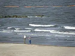In 1998, the state of Louisiana and its federal and local partners approved a coastal restoration project called Coast 2050: Toward a Sustainable Coast.[10] It is a $14 billion fund that is hoped to be allocated over 50 years in around 77 restoration projects with the aim of creating a sustainable ecosystem of coastal Louisiana.[11] While the plan focuses on all of Louisiana, restoration of the Barataria Basin was the first priority and Grand Isle is at the mouth of Barataria Bay.[10] On February 18, 2000, the United States Army Corps of Engineers and the Louisiana Department of Natural Resources signed an agreement to initiate a restoration plan to this basin. The loss of wetland in Barataria Bay is estimated at 11 square miles per year from 1978 to 1990 (Fuller et al. 1995).[10] Most strategies in the Barataria Basin region depend on the overall input, movement, and circulation of water, sediment, and nutrients in the basin.[10] Other strategies can be implemented independently of these considerations.[10] These include barrier shoreline restoration, marsh creation in the southwestern basin, and a delta-building diversion from the lower Mississippi.[10] The completion of Coast 2050 was to restore and protect 450,000 acres of wetland.[12] U.S. Congress had not approved the Coast 2050 plan, and when Hurricane Katrina and Hurricane Rita hit, the federal government was studying a less costly, scaled down proposal which could be initiated in the span of a decade.[12]