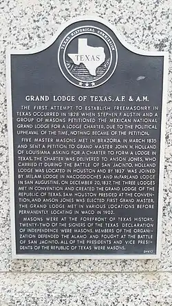 - ^ Texas State Historical Survey Committee (1970). "Holland Lodge No. 1 Ancient Free & Accepted Masons of Texas, State Historical Marker #10686". THE HISTORICAL MARKER DATABASE. Archived from the original on November 30, 2023.