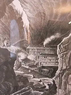 Before the construction of the water pipeline to Ragaz in 1840, the baths were located in the Tamina Gorge.