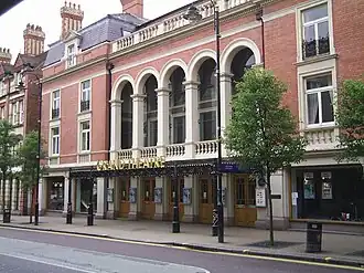 The Grand Theatre opened on 10 December 1894.[2] It was not Wolverhampton's first theatre but has outlasted its rivals, including the Star Theatre, later known as the Theatre Royal, Clifton Cinema in Bilston Street, the Empire Palace, and later the Hippodrome in Queen Square which was destroyed by fire in the 1950s.