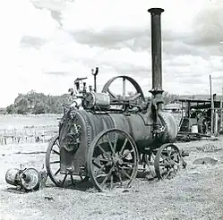 The Grandchester sawmill is powered by steam and this factor makes it an unusual phenomenon in Queensland and Australia. The steam engine was built by "Marshall Sons & Co. Ltd, Engineers, Gainsborough, England." The date of construction is unclear, however a small plate records a machinery inspection in 1911. The steam engine was first used in the Nestle's factory in Toogoolawah (since demolished). It was then used in the Lowood butter factory and afterwards in the Hoods Sawmill, Gatton.[1]