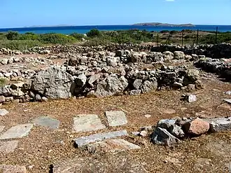 ![]() Minoan site of Roussolakkos near Paleokastro. The islands of Elasa (left) and Grandes (right) in the distance. | |
