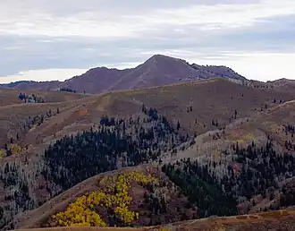 Grandview Peak is located nine miles (14 km) northeast of Salt Lake City on land managed by Wasatch National Forest. It is the highest point within the boundaries of Salt Lake City.[2][6] The peak is part of the Wasatch Range which is a subrange of the Rocky Mountains. Precipitation runoff from the mountain's north slope drains to Mill Creek, whereas the south slope drains to City Creek. Topographic relief is significant as the summit rises nearly 2,000 feet (610 meters) above City Creek in one mile (1.6 km) and 1,200 feet (366 meters) above Mill Creek in 0.7 mile (1.1 km). This mountain's toponym has been officially adopted by the United States Board on Geographic Names.[4]