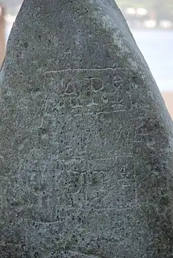 This is the famous 'Lang Stane' of Gourock, more familiarly spoken of as 'Granny Kempock'... It is supposed that the Kempock Stone marks the site in Druid times of an altar to Baal...