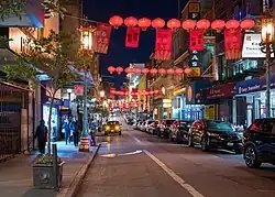 Grant Avenue in San Francisco, California, is one of the oldest streets in the city's Chinatown district. It runs in a north–south direction starting at Market Street in the heart of downtown and dead-ending past Francisco Street in the North Beach district. It resumes at North Point Street and stretches one block to The Embarcadero and the foot of Pier 39.