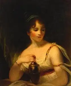 Lord Fletcher Norton, 3rd Lord Grantley was born in 1798. In 1825 he married Charlotte Earle Beechey who was the daughter of Sir William Beechey, the famous portraitist. Sir William painted a portrait of his daughter which is shown.
